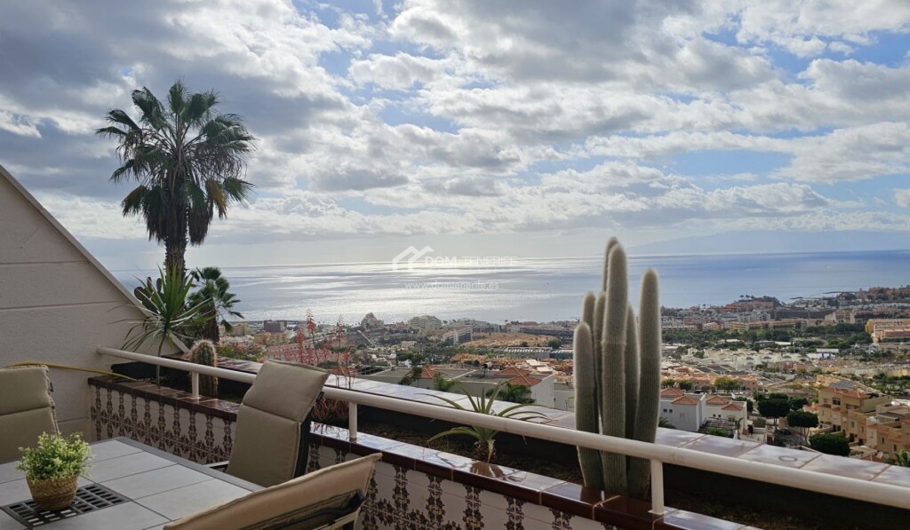 Dom Tenerife Inmobiliaria le presenta este luminoso apartamento ubicado en el exclusivo complejo residencial “The Sunset”, en Roque del Condea poca distancia de la emblemática Playa del Duque. El complejo, impecablemente mantenido y de carácter tranquilo, dispone de tres piscinas comunitarias, una de ellas climatizada, que ofrecen impresionantes vistas panorámicas al océano. La vivienda, situada en esquina, goza de una distribución óptima y cuenta con dos dormitorios con armarios empotrados. El dormitorio principal tiene acceso directo a la amplia terraza y dispone de un baño en suite con ducha. La cocina americana, completamente equipada, se integra de forma funcional en el espacio. Desde el amplio y luminoso salón-comedor se accede a la magnífica terraza, desde la cual se puede disfrutar de espectaculares vistas al mar, a la isla de La Gomera y a las montañas. La propiedad tiene una superficie construida de 82 m² y una terraza de 24 m². Como valor añadido, incluye un garaje cerrado de 20 m² en la planta subterránea del edificio y un trastero de 10 m². El apartamento está parcialmente renovado, y se vende amueblado y decorado. Una oportunidad única para disfrutar de la tranquilidad, el confort y las mejores vistas del sur de Tenerife!