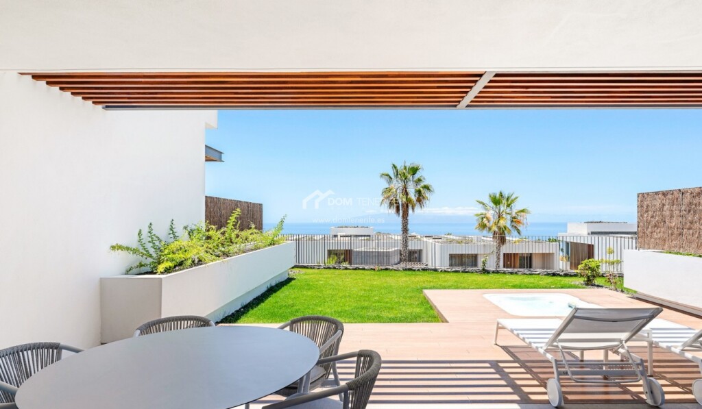 Descubre el lujo de vivir en esta impresionante propiedad de 2 dormitorios en Tenerife, ubicada en la planta baja. Con una generosa terraza de 51 m² y un jardín de 34 m², este elegante hogar vacacional ofrece vistas impresionantes al océano y a la isla de La Gomera.El espacioso área de estar-comedor-cocina de concepto abierto está inundado de luz natural gracias a la terraza y el jardín, creando una atmósfera acogedora. Los interiores y exteriores completamente amueblados están complementados por muebles y electrodomésticos de alta calidad, asegurando comodidad y estilo.Retírate a la Suite Principal, que cuenta con puertas de vidrio deslizables que dan directamente a la terraza trasera. Su baño en suite está diseñado para la relajación, equipado con ducha y bañera. El segundo dormitorio, de 13 m², ofrece acceso conveniente al patio delantero.Los residentes pueden disfrutar de fantásticas comodidades comunitarias, que incluyen piscinas gestionadas y recepción las 24 horas, asegurando que tu hogar esté siempre impecable a tu llegada. Además, disfruta de beneficios exclusivos para propietarios que ofrecen descuentos sustanciales en tenis, golf, restaurantes selectos y el spa. ¡DOM Tenerife – Compra con seguridad!