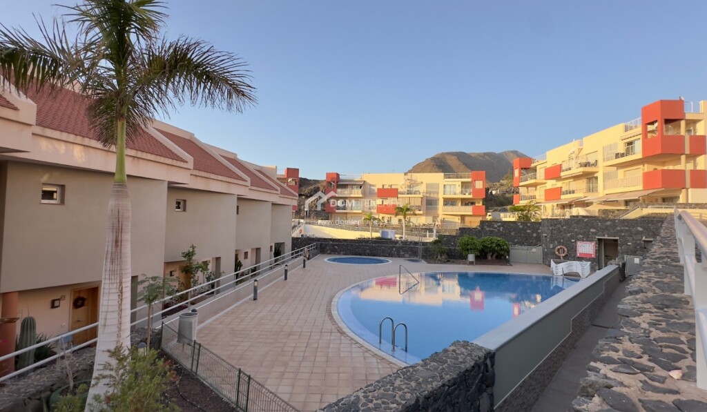 Presentamos con entusiasmo una hermosa casa adosada en la encantadora zona turística de Puerto de Santiago, en la costa suroeste de Tenerife. Esta propiedad, distribuida en tres niveles con solárium, cuenta con tres dormitorios, tres baños y una maravillosa cocina abierta que conecta con el salón y da acceso a una amplia terraza con vistas magníficas. Además, dispone de un garaje con capacidad para dos coches y un trastero. Su diseño luminoso, con ventanas panorámicas que llenan cada espacio de luz natural, crea un ambiente acogedor y lleno de vida.El complejo residencial donde se encuentra cuenta con una piscina comunitaria, perfecta para disfrutar del excelente clima de la zona. La propiedad se vende completamente amueblada y decorada con materiales de alta calidad, además de contar con una cocina totalmente equipada, lista para entrar a vivir.Ubicada en una zona con infraestructura bien desarrollada, cerca de supermercados como Lidl, Mercadona e HiperDino, restaurantes, pizzerías, bares, pastelerías, cafeterías, bancos, farmacias y otros servicios, esta casa es una excelente opción tanto como residencia principal como inversión.No pierdas la oportunidad de visitar esta magnífica propiedad. Contáctanos para concertar una cita. IBI 550€ , comunidad 150€