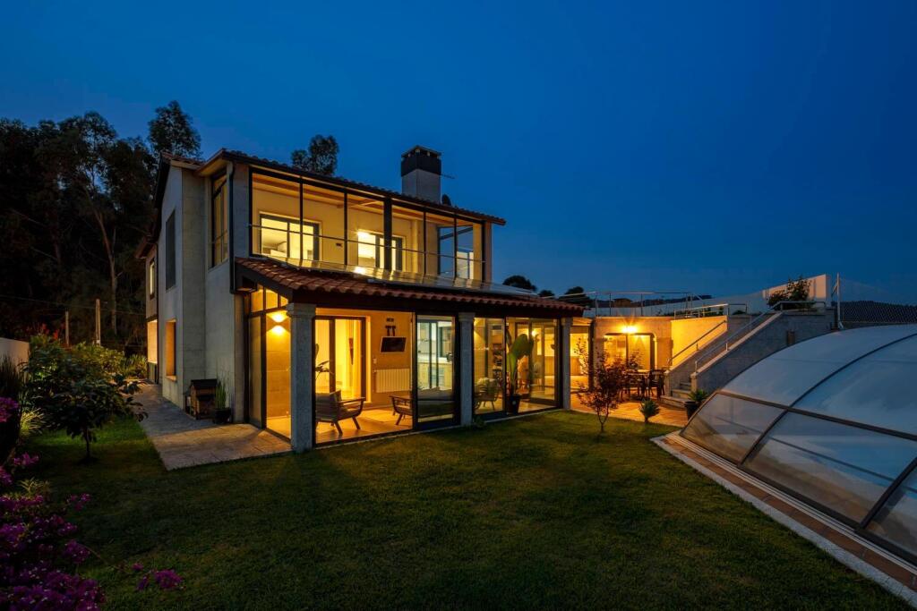 Dentro de un enclave único como es Darbo, nos encontramos con este precioso chalet 294 m2 construidos, de los cuales son útiles 280 m2 y con 760 m2 de jardín, distribuido en dos plantas con una piscina climatizada, unas estancias con instalaciones inmejorables y unas vistas a la Ría de Vigo inigualables. La planta baja se distribuye en un amplio garaje con capacidad para dos o tres coches cómodamente, dotado este con punto de recarga propio para coches eléctricos, zona de lavandería y almacenaje, con acceso interior desde el garaje a la vivienda, una habitación con su baño totalmente completo, un aseo, un amplio salón decorado con estilo minimalista donde reina un gran sofá para un buen descanso y una zona de trabajo que se convierte también en barra para uso y disfrute acorde a la estancia, una espaciosa y cómoda cocina totalmente equipada con todos los electrodomésticos necesarios, donde también distinguimos una zona de comedor, desde la cocina tenemos acceso a una increíble terraza interior dotada de todas las comodidades, para disfrutar tanto de un buen café o descanso con la familia en invierno, como de una sobremesa con amigos en verano, ya que está totalmente climatizada con calefacción y aire acondicionado para poder disfrutar de ella todo el año, desde esa terraza accedemos a la piscina climatizada y a un pequeño jardín, donde podremos disfrutar tomando el sol en unas cómodas tumbonas, o disfrutar de las maravillosas vistas a la Ría que nos ofrece este rincón de la propiedad. En esta misma planta baja disponemos de otra espectacular terraza interior donde distinguimos una amplia zona de comedor, en la cual tenemos capacidad para diez comensales como mínimo y una impresionante cocina dotada con una vinoteca para degustar los mejores vinos a su correcta temperatura, una zona de barbacoa con su correspondiente horno para disfrutar de unos ricos asados y un gran mesado para cocinar cómodamente en cualquier época del año, ya que también dispone de calefacción y aire acondicionado, toda ella decorada con unos bonitos arcos en piedra natural.Accedemos a la segunda planta por unas preciosas escaleras con iluminación indirecta y unas bonitas barandillas de cristal, la cual se distribuye en dos habitaciones con sus baños completos e independientes, una gran Suite Principal con su baño completo y un funcional y cómodo vestidor, desde la Suite tenemos acceso a otra gran terraza interior totalmente acristalada y acondicionada para poder disfrutar de las espectaculares e impresionantes vistas que nos ofrece el entorno, con diversas posibilidades de ocio, como montar un gimnasio, una zona de lectura, etcCabe destacar que todos los cabeceros de las camas en las habitaciones tienen una decoración especial, al igual que toda la propiedad está decorada con un gusto exquisito, con una bonita iluminación indirecta y multitud de detalles. Los cuartos de baño están provistos de radiadores toalleros y calefacción en todas sus estancias. La vivienda también dispone de placas solares para su propio abastecimiento.La propiedad se encuentra ubicada en Darbo, una de las cinco parroquias que junto con Cangas, Coiro, Hío y Aldán componen la Península de Morrazo, en el municipio pontevedrés de Cangas del Morrazo. Muy cerca tenemos cuatro grandes e impresionantes playas como son la del Limens, la de Nerga, la de Menduíña y la de Pinténs y en un radio de 5 km nos encontraremos con multitud de playas de aguas turquesas y cristalinas con sus arenas blancas y finas. ¿¿¿A qué esperas para vivir en este paraíso y disfrutar de este espectacular hogar??? Concierta una visita y estaremos encantados de enseñártelo!!!!