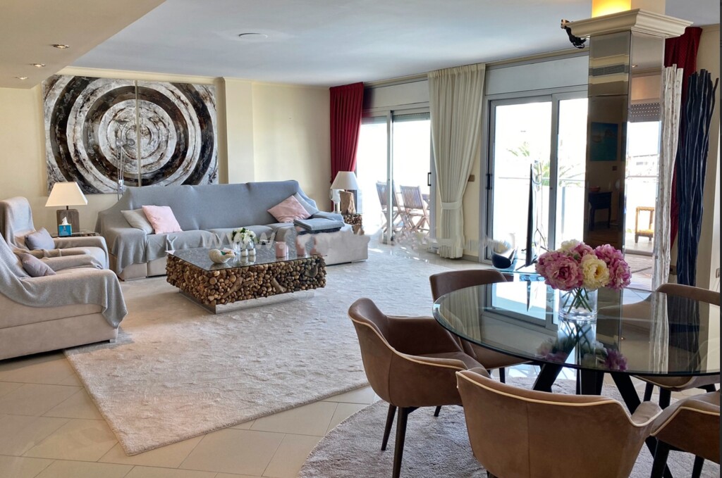 Viva el sueño mediterráneo en este suntuoso ático de 230 m² totalmente amueblado, situado en la última planta de una residencia frente al Club Nautic y a sólo 400 metros de la Playa de Riells.